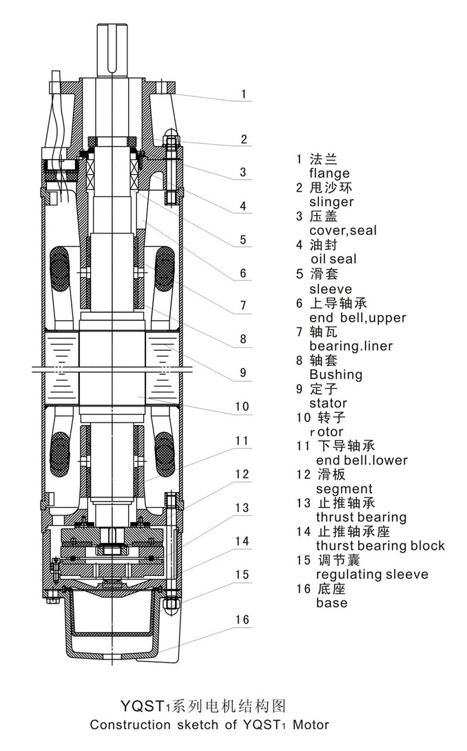 概述 YQST系列大容量潛水三相異步電動(dòng)機(jī)是應(yīng)國(guó)際市場(chǎng)需要,在小井徑中發(fā)展大容量電機(jī)而專門開發(fā)的一種新型潛水電機(jī),他特別適用于高揚(yáng)程潛水泵配套提取地下水,為城市工礦企業(yè)、農(nóng)業(yè)灌溉及居民生活提供生產(chǎn)和生活用水。本產(chǎn)品除具備一般井用潛水電機(jī)特點(diǎn)外,還具有單機(jī)容量大,力能指標(biāo)高,承受軸向力大,密封性能好等特點(diǎn)。為了適應(yīng)用花需要,電機(jī)機(jī)殼可采用不銹鋼材料,但需在合同中注明。