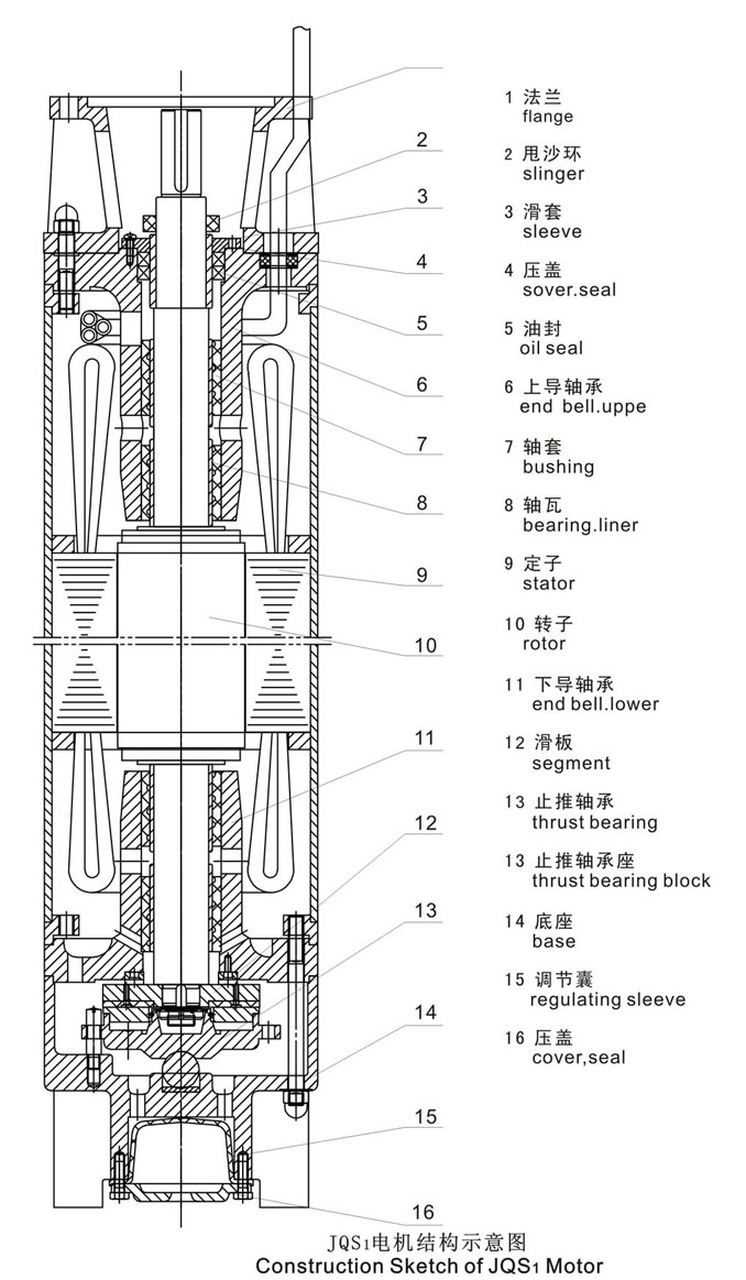 JQS 系列井用潛水三相異步電動機為濕式充水密封型機構(gòu),主要用于8’’、 10’’深井中驅(qū)動潛水泵提取地下水,為城市、工礦企業(yè)、農(nóng)田灌溉、牧場和居民生活提供生產(chǎn)和生活用水。JQS 1 系列電機設計合理,并經(jīng)多年生產(chǎn)實踐經(jīng)驗屢加改進,具有機構(gòu)簡單、噪音小、性能優(yōu)良、使用可靠、維修方便、運用于水中、節(jié)約基礎投資等特點。